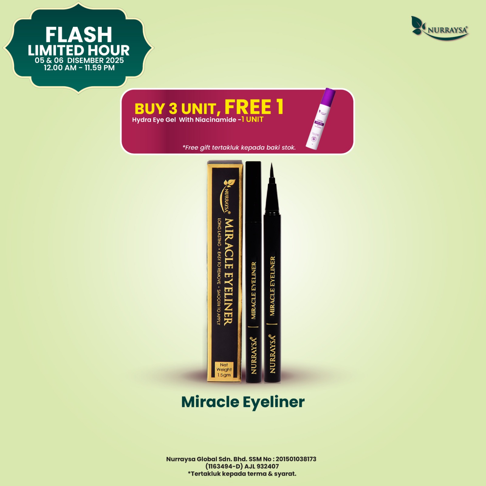 A: Prep the eye skin with moisturizer or eye cream and draw a line using Miracle Eyeliner starting from inner corner of the eye to the outer corner and finish off with a line to the lower lash, and make a line at the curve of eye.