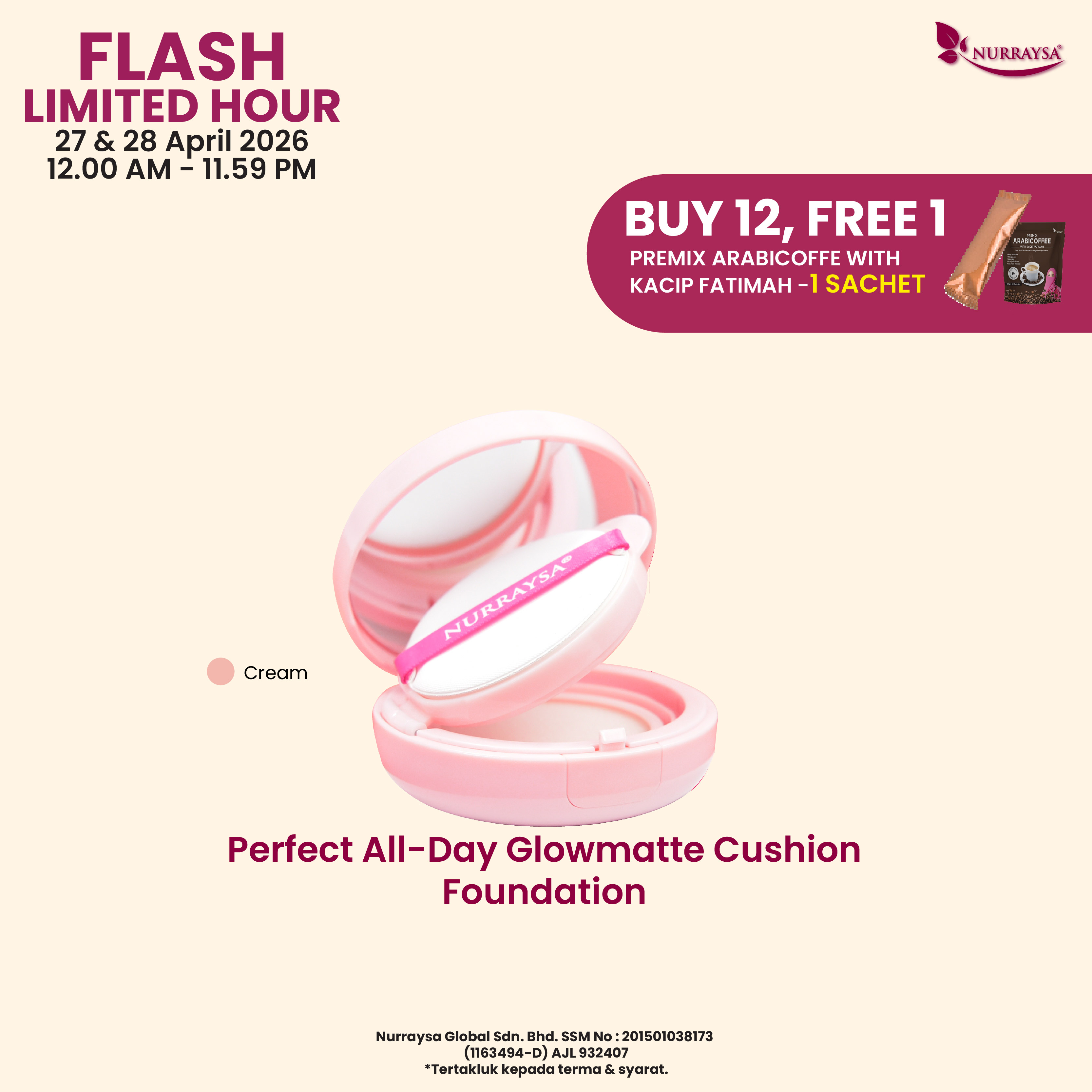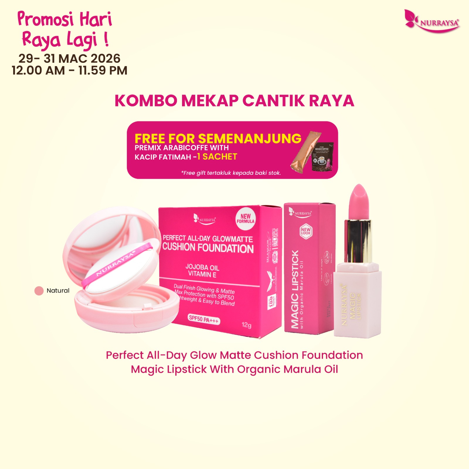 Nurraysa Beauty Raya 11 Mac-09 April : 1 Set Hotset Raya (Cushion FD)