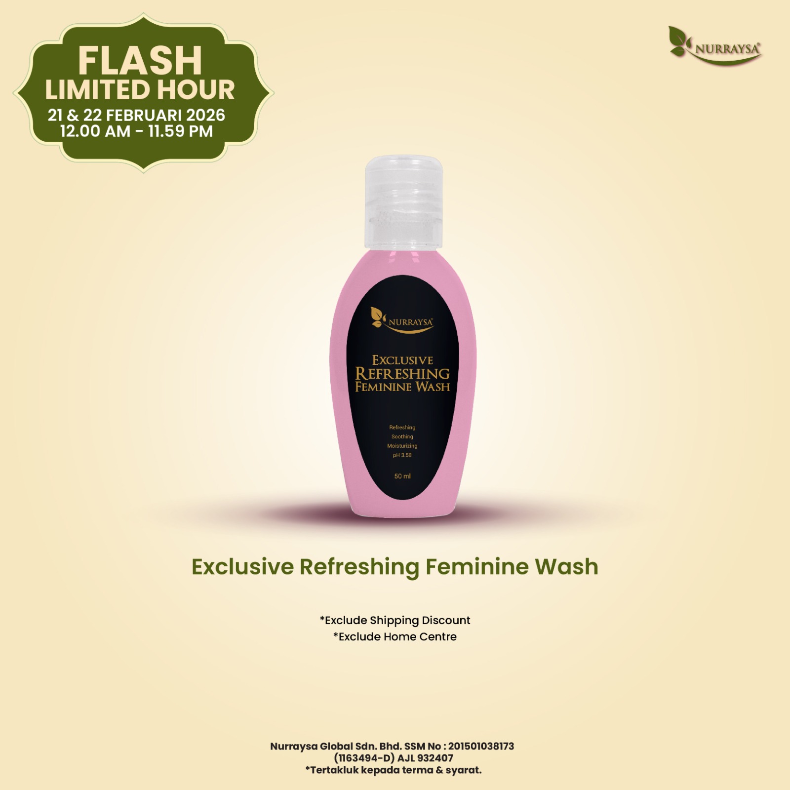Meriah Raya Bersama Nurraysa 11 Feb-09 Mac : 10 Unit Exclusive Refreshing Feminine Wash