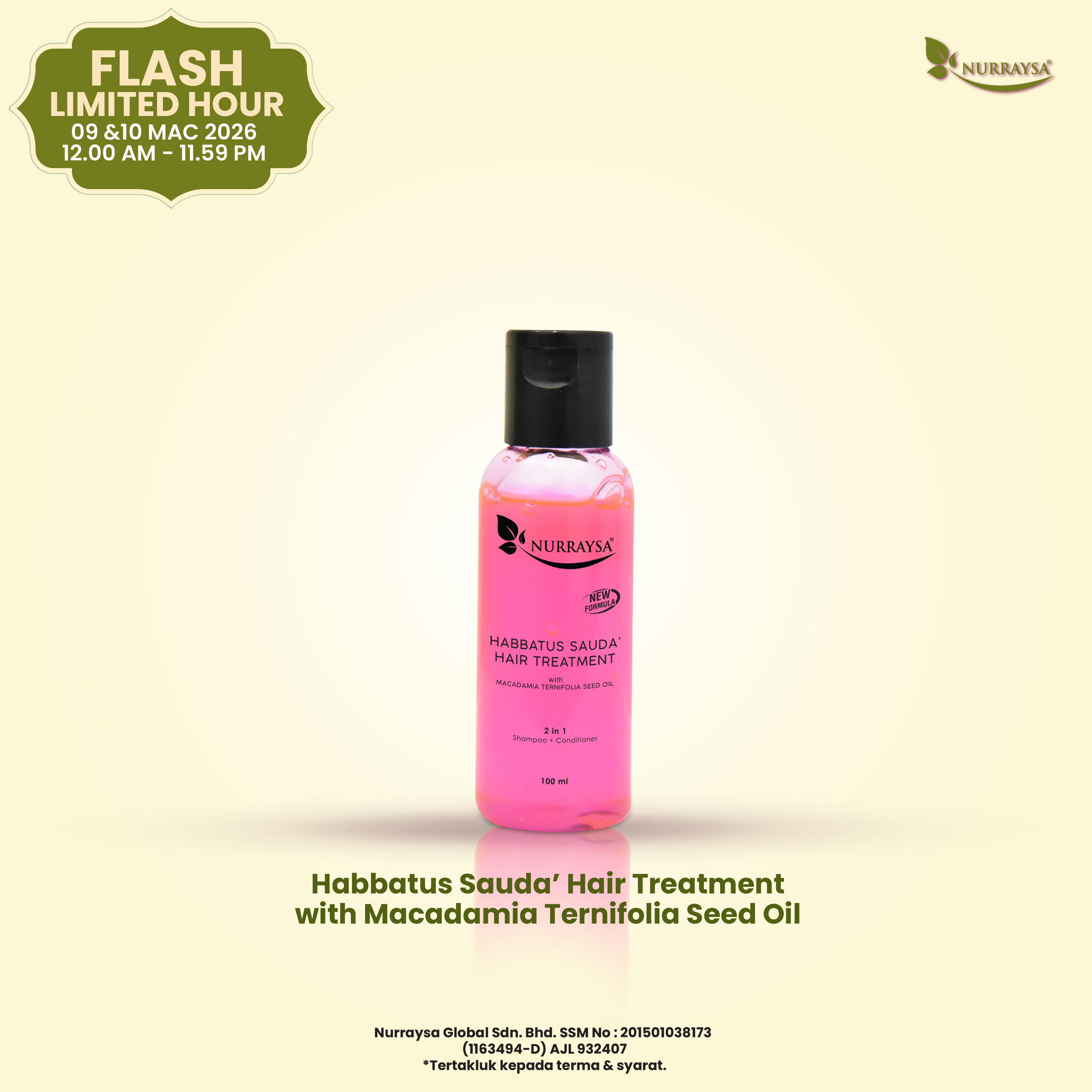 Flash Limited Hour 09-10 Mac : 3 Unit Habbatus Sauda'Hair Treatment (SM/SS)