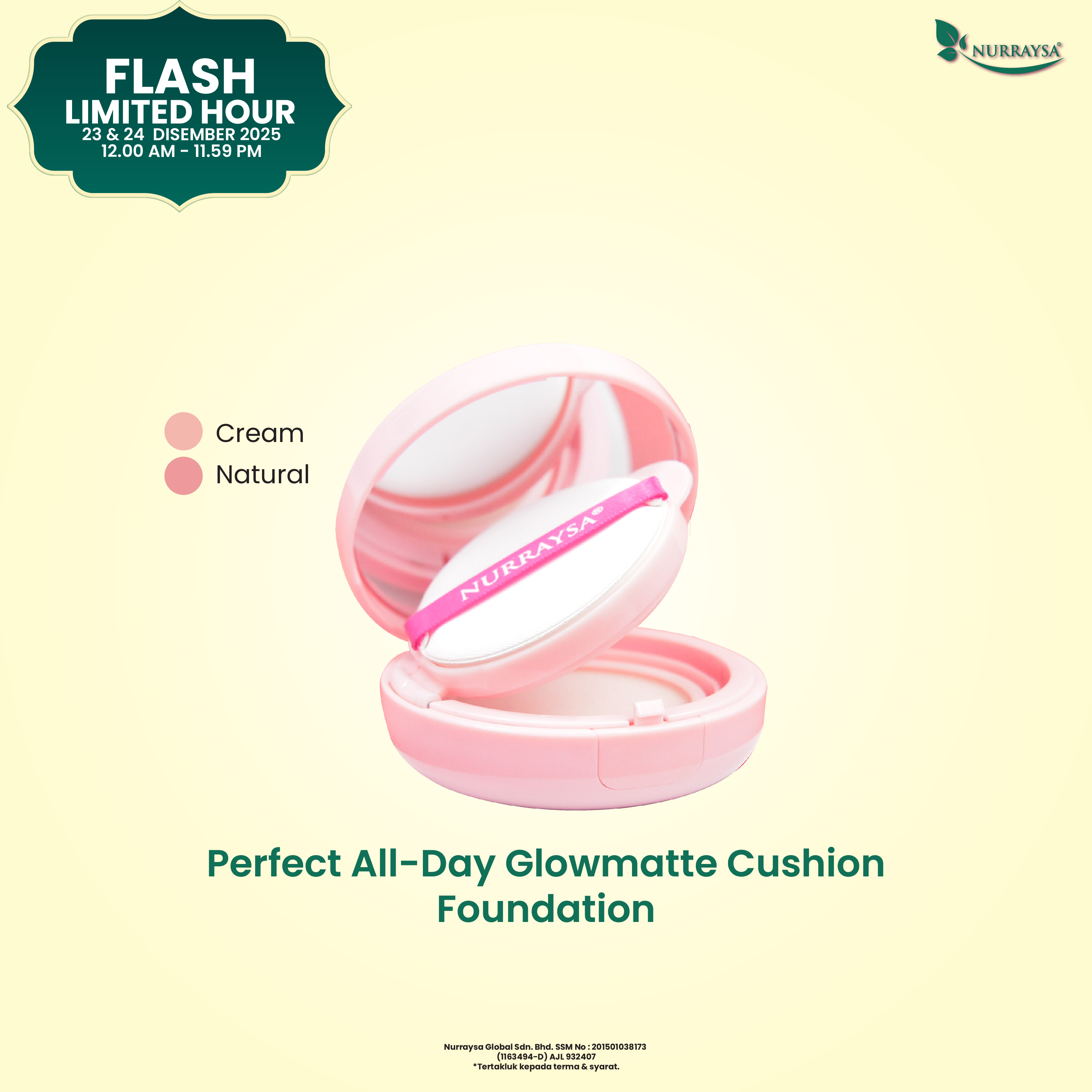 Flash Limited Hour 23-24 Disember : 12 Unit Perfect All-Day GlowMatte Cushion Foundation
