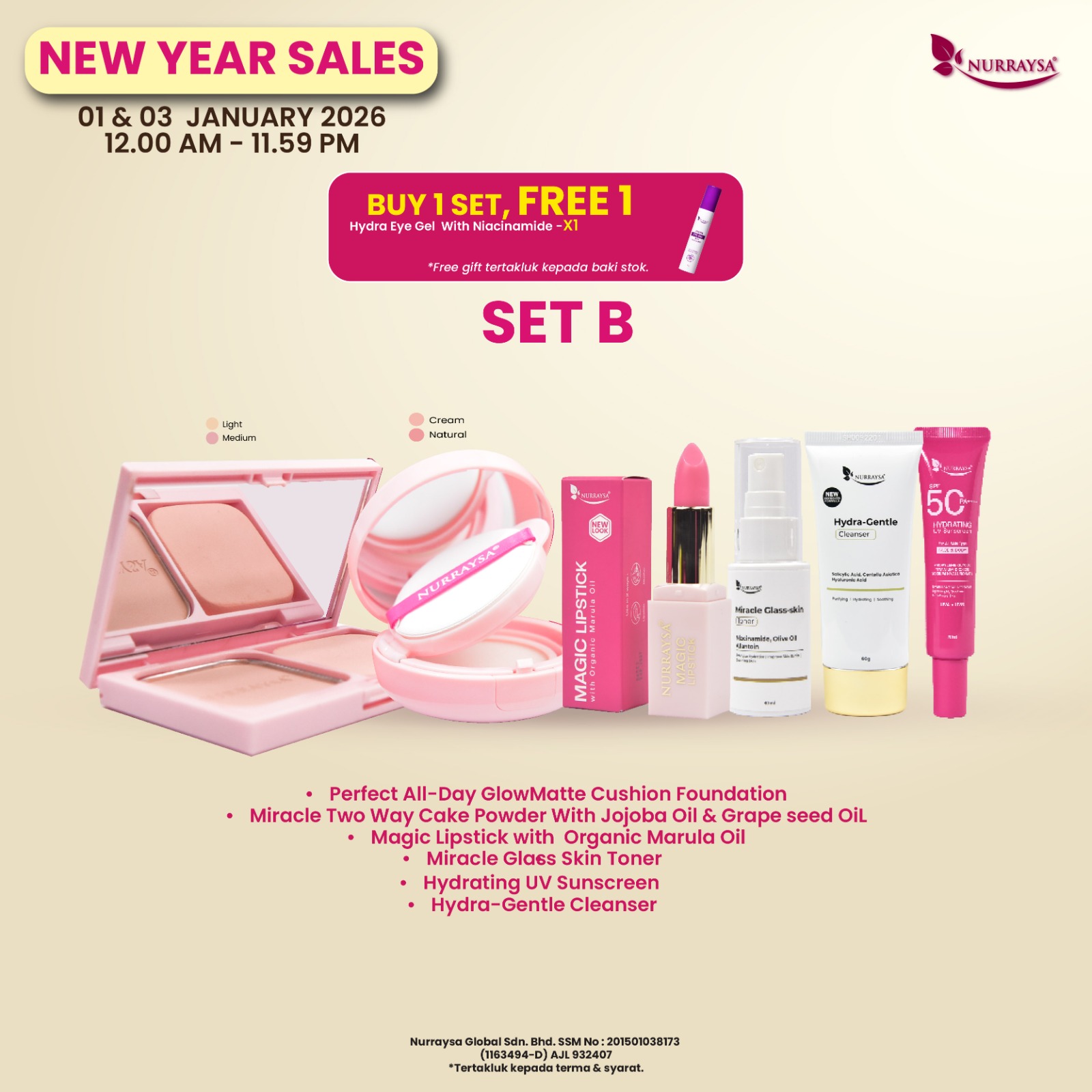 New Year Sales 01-03 January : Set B (Magic Lipstick+Cushion FD+Twcp+Cleanser+Toner+Sunscreen)
