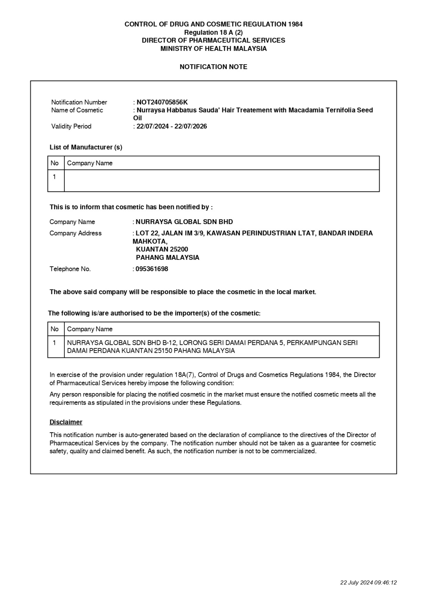 Tags: | Habbatus Sauda'Hair Treatment With MacadamiaTernifolia seed oil, Bodycare |
