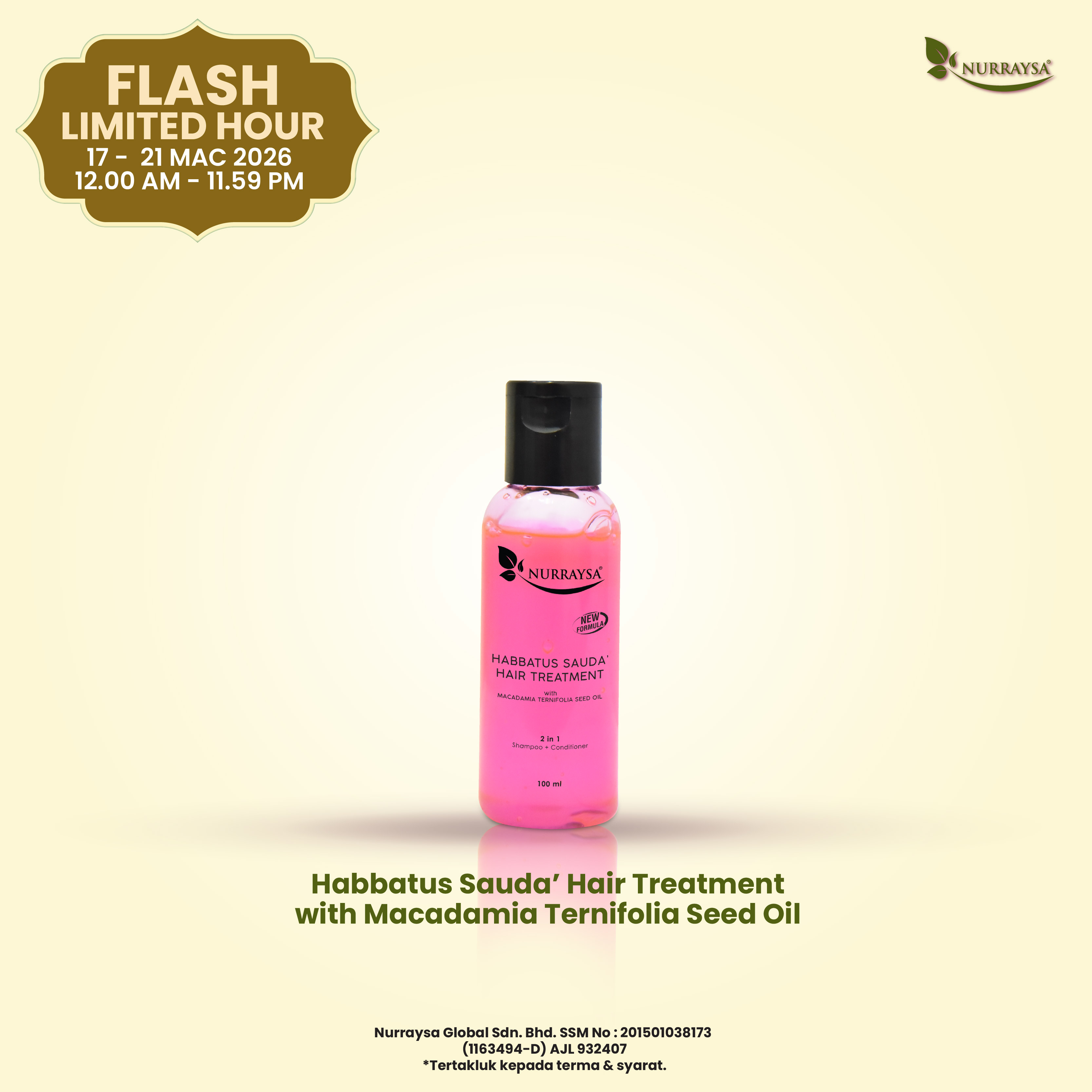 Flash Limited Hour 17-21 Mac : 3 Unit Habbatus Sauda'Hair Treatment (SM/SS)