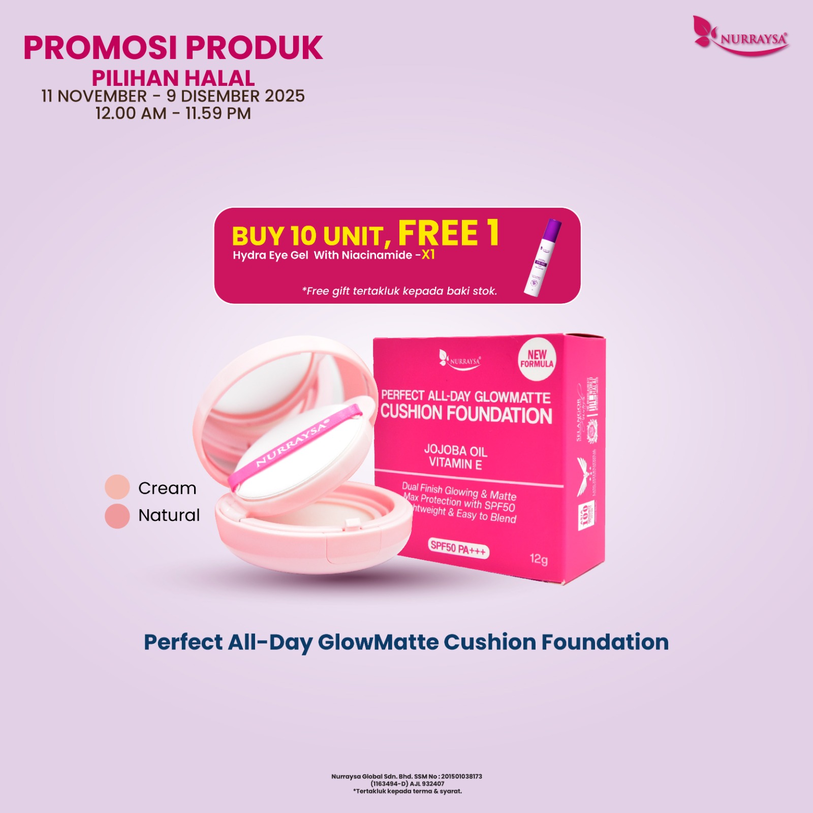 Promosi Produk Pilihan Halal 11 Nov-09 Dis : 10 Unit GlowMatte Cushion Foundation