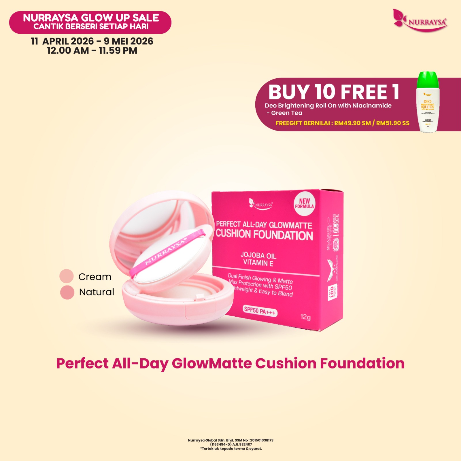 Nurraysa Beauty Raya 11 Mac-09 April : 1 Set Hotset Raya (Cushion FD)