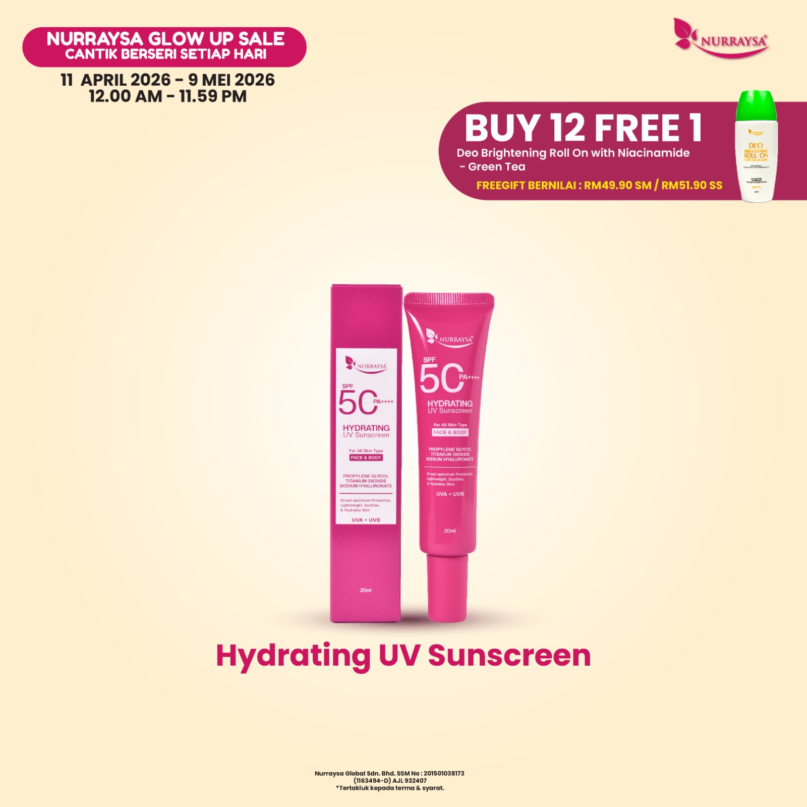 Nurraysa Glow Up Sale 11 April-09 Mei : 2 Unit Hydrating UV Sunscreen