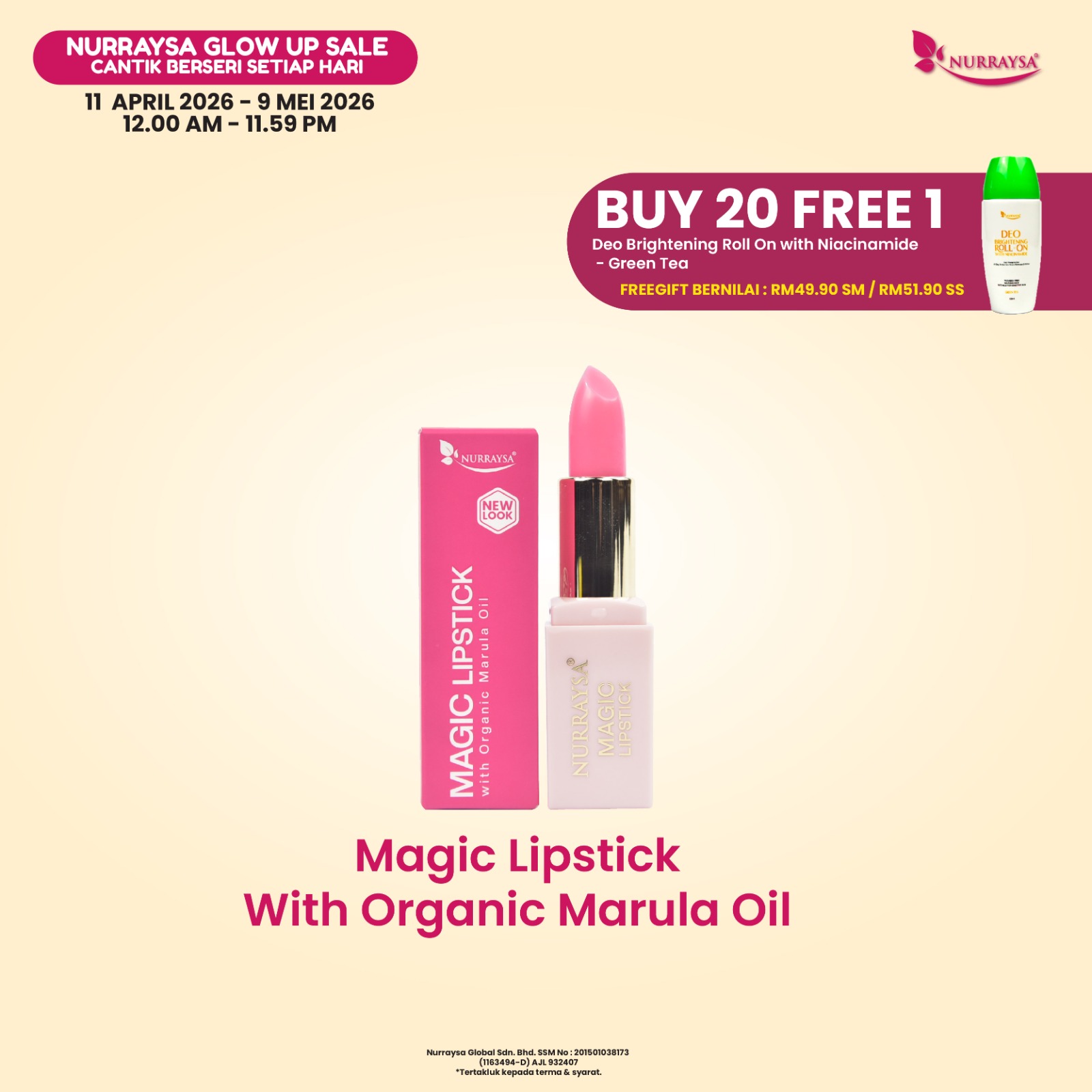 Nurraysa Glow Up Sale 11 April-09 Mei : 20 Unit Magic Lipstick with Marula Oil