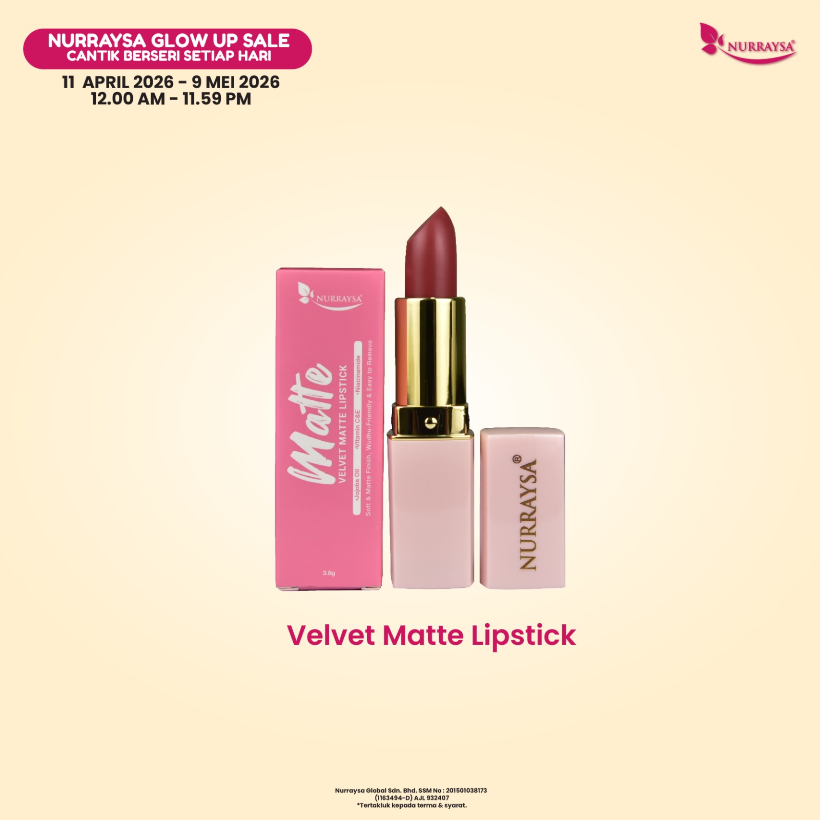Nurraysa Glow Up Sale 11 April-09 Mei : 3 Unit Velvet Matte Lipstick