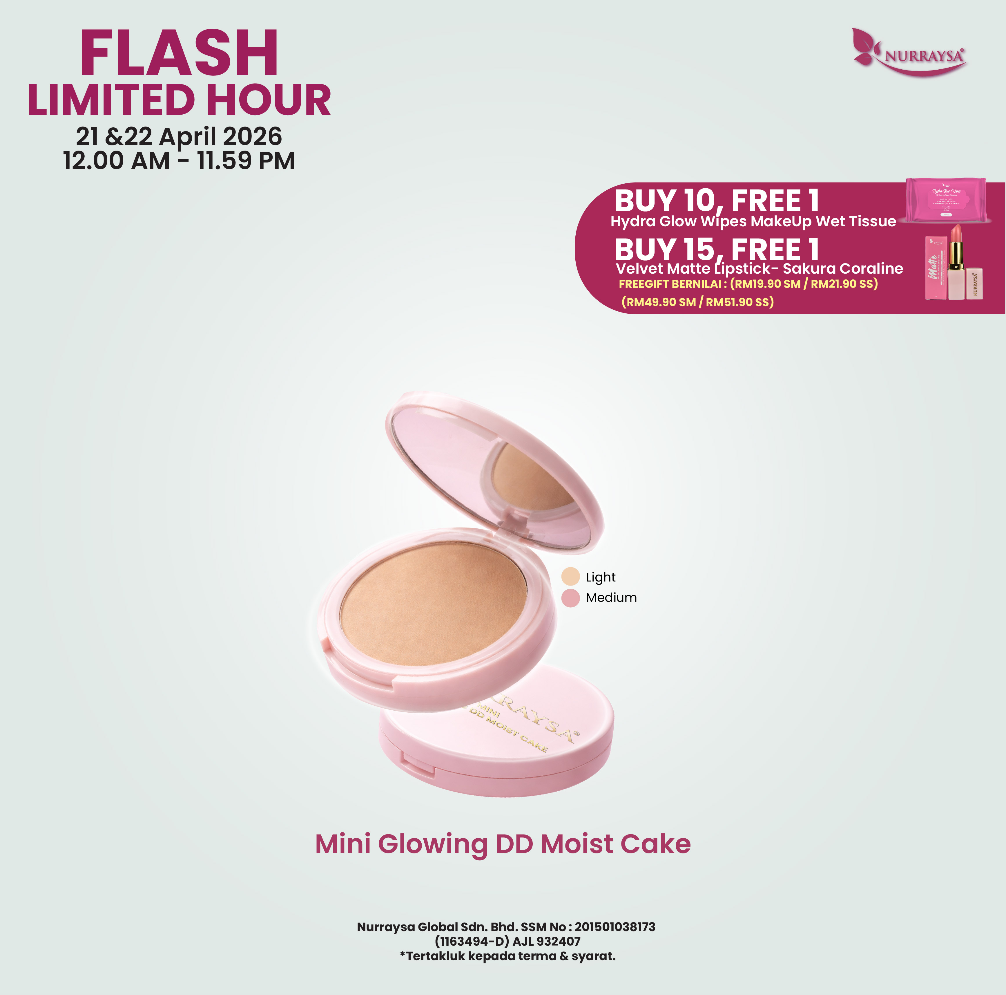 Nurraysa Beauty Raya 11 Mac-09 April : 1 Set Hotset Raya (Cushion FD)