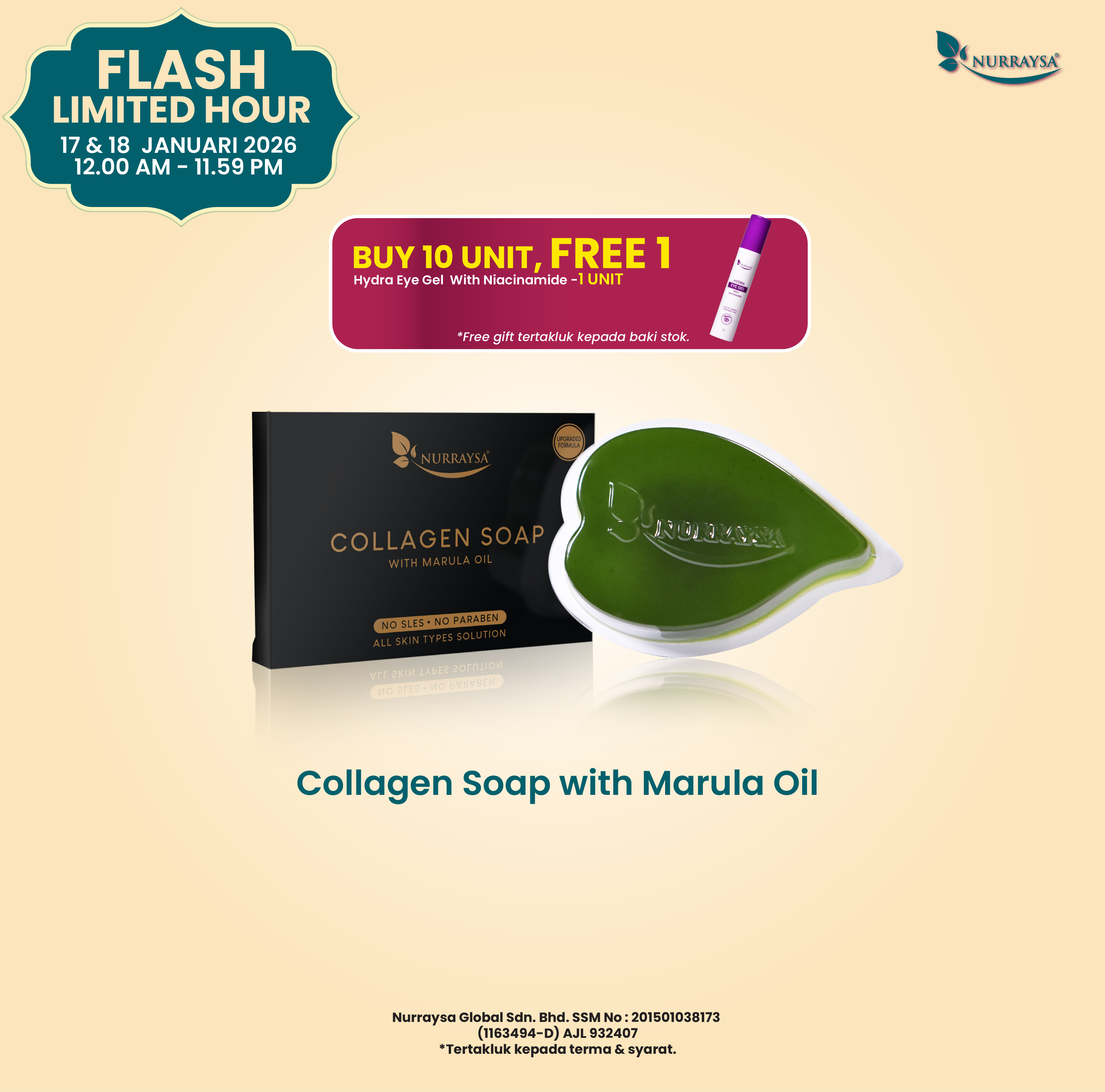 Nurraysa Glow-Up Raya 11 Januari-09 Februari : 20 Unit Collagen Soap With Marula Oil (SM)