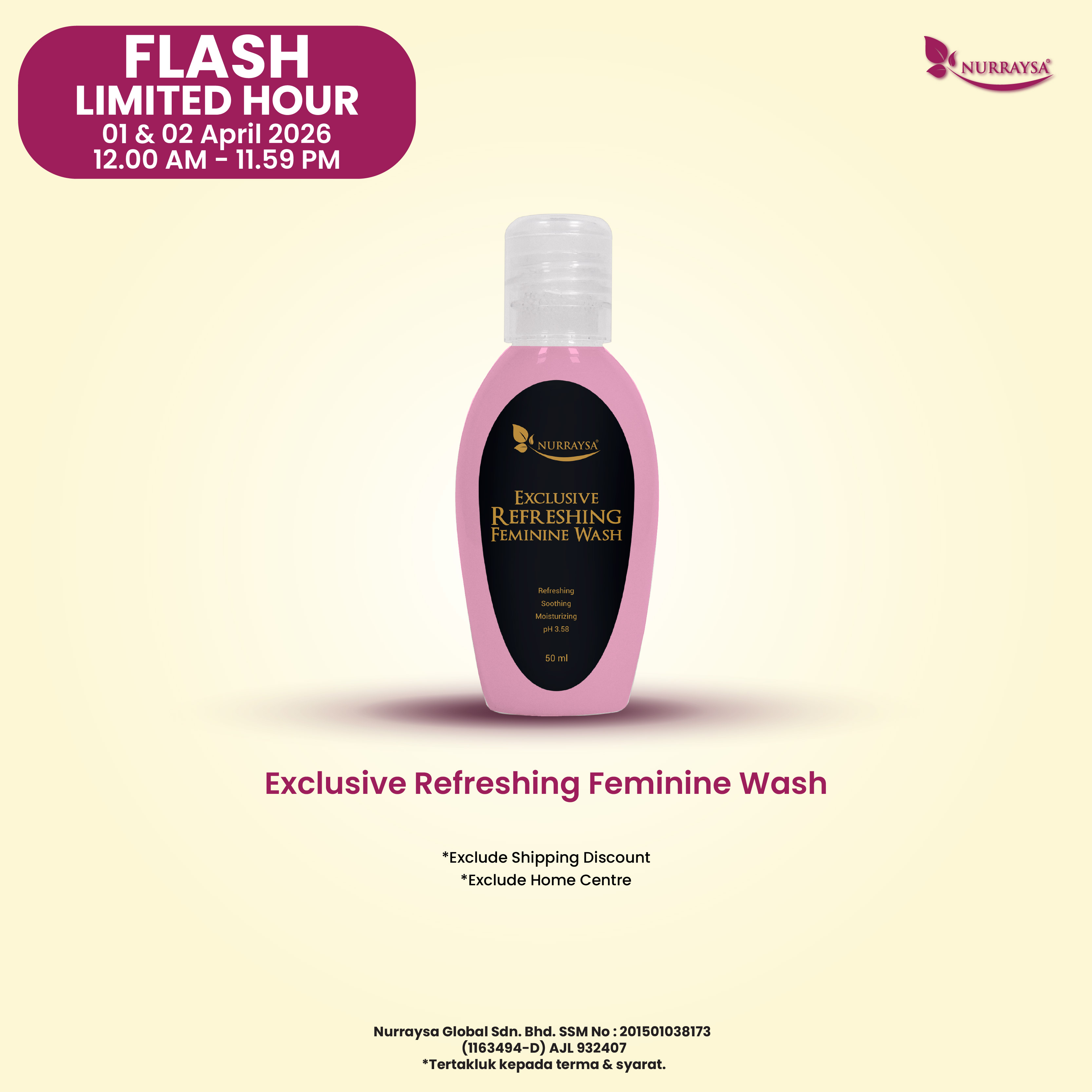 Nurraysa Beauty Raya 11 Mac-09 April : 3 Unit Exclusive Refreshing Feminine Wash