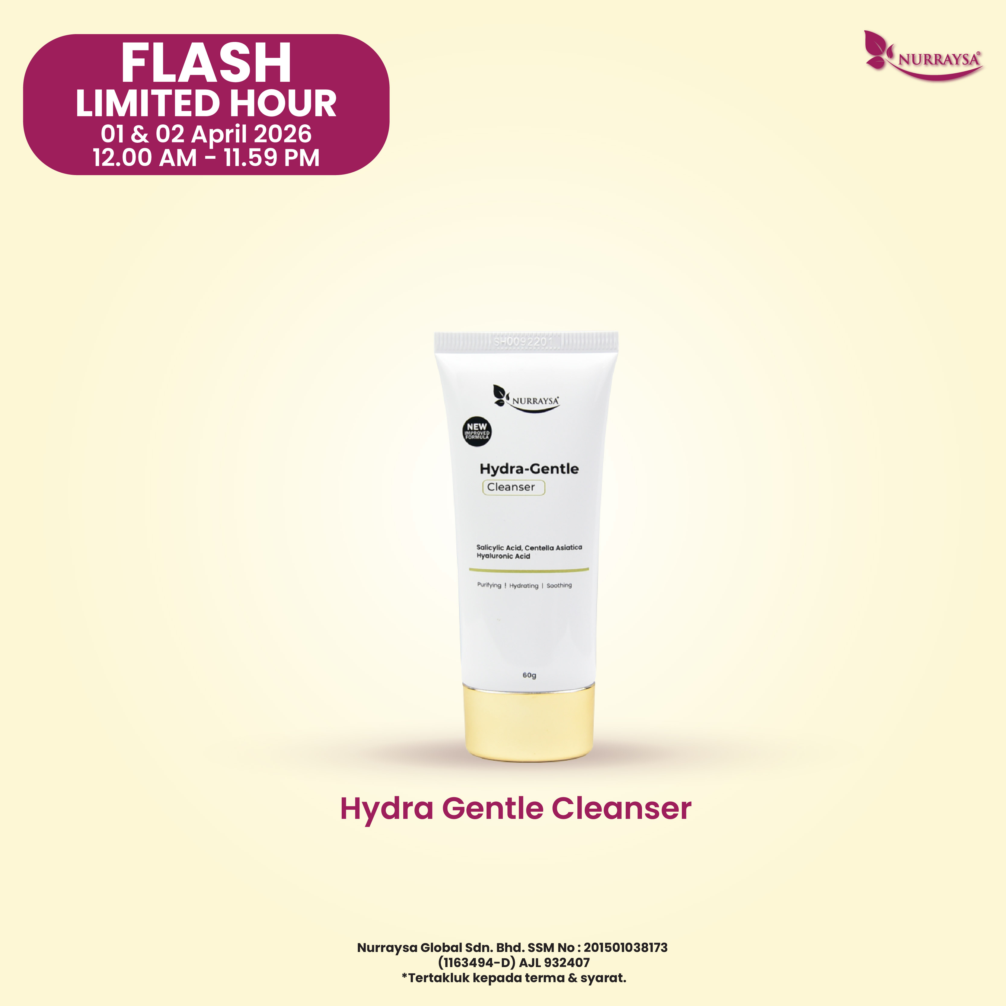Flash Limited Hour 01-02 April : 2 Unit Hydra Gentle Cleanser