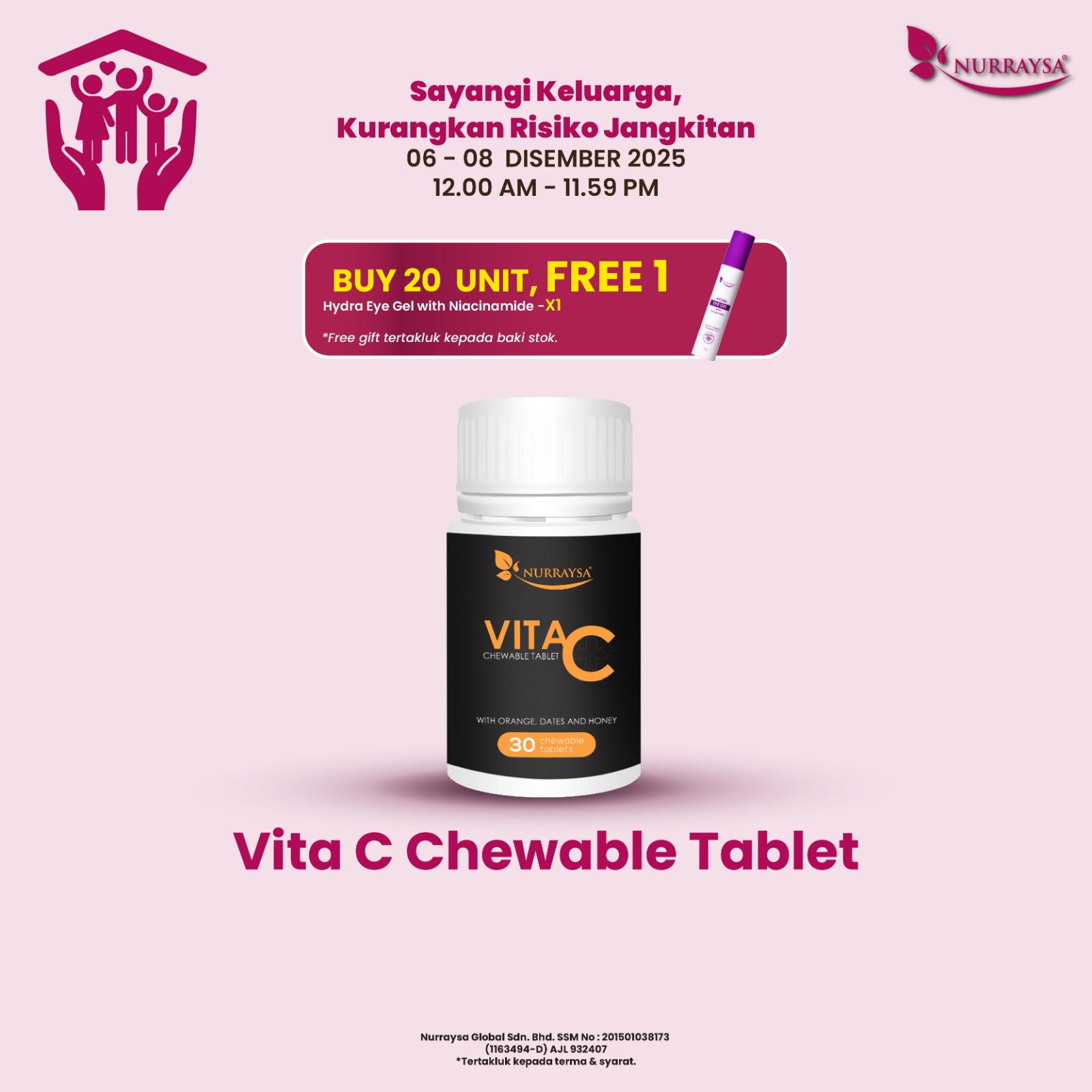 Sayangi Keluarga, Kurangkan Risiko Jangkitan 06-08 Disember : 3 Unit Vita C Chewable Tablet