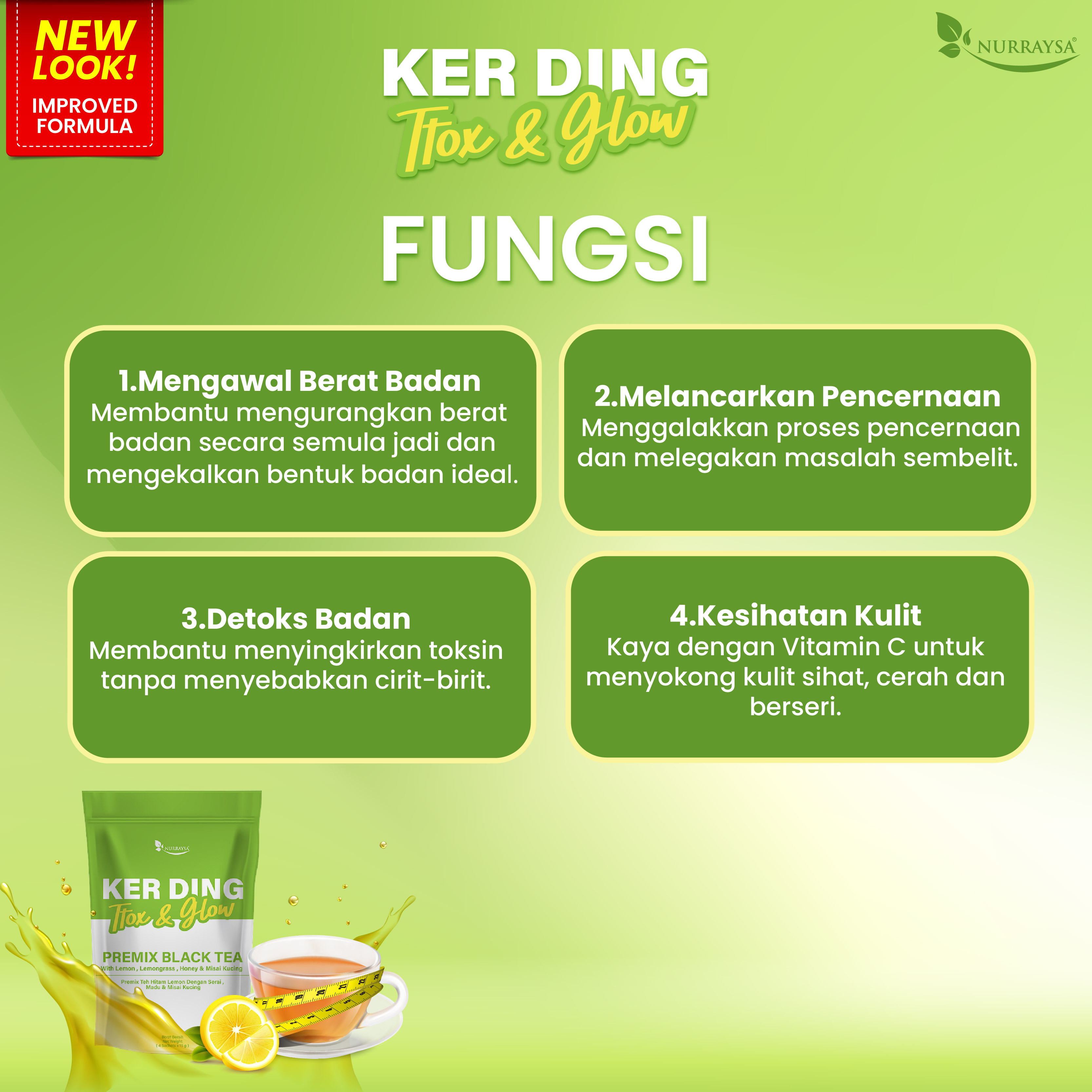 1 Sachet Ker Ding Ttox & Glow (Premix Black Tea with Lemon, Lemongrass, Honey & Misai Kucing)