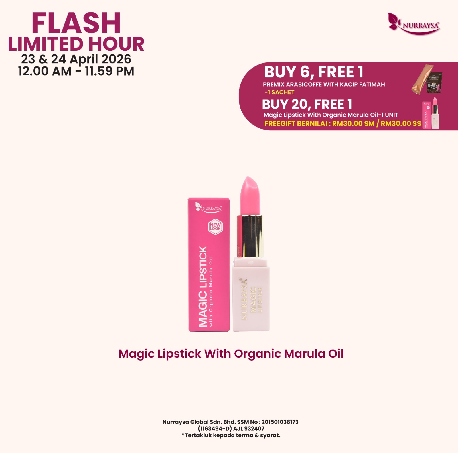 Nurraysa Glow Up Sale 11 April-09 Mei : 20 Unit Magic Lipstick with Marula Oil