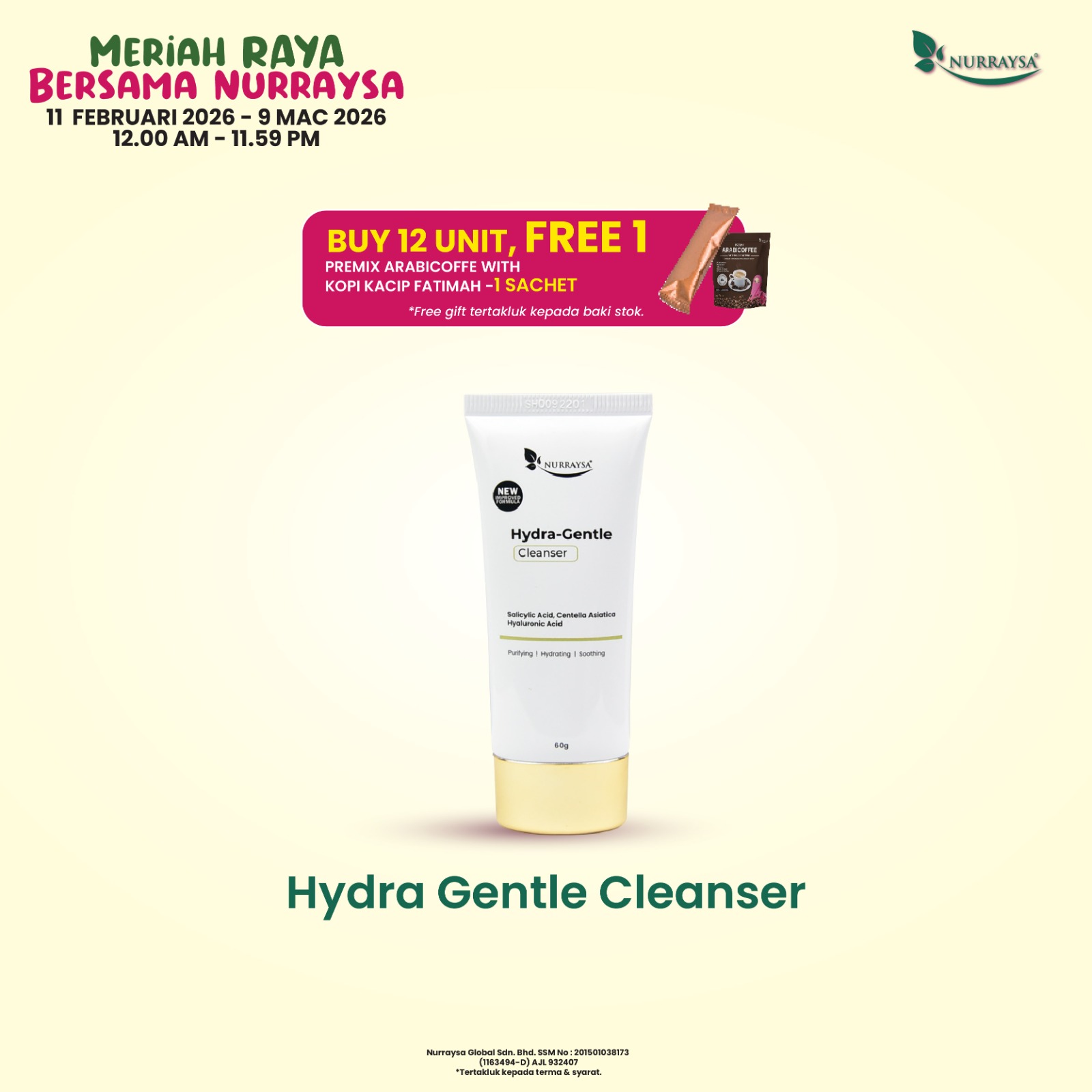 Meriah Raya Bersama Nurraysa 11 Feb-09 Mac : 12 Unit Hydra Gentle Cleanser (SM/SS)