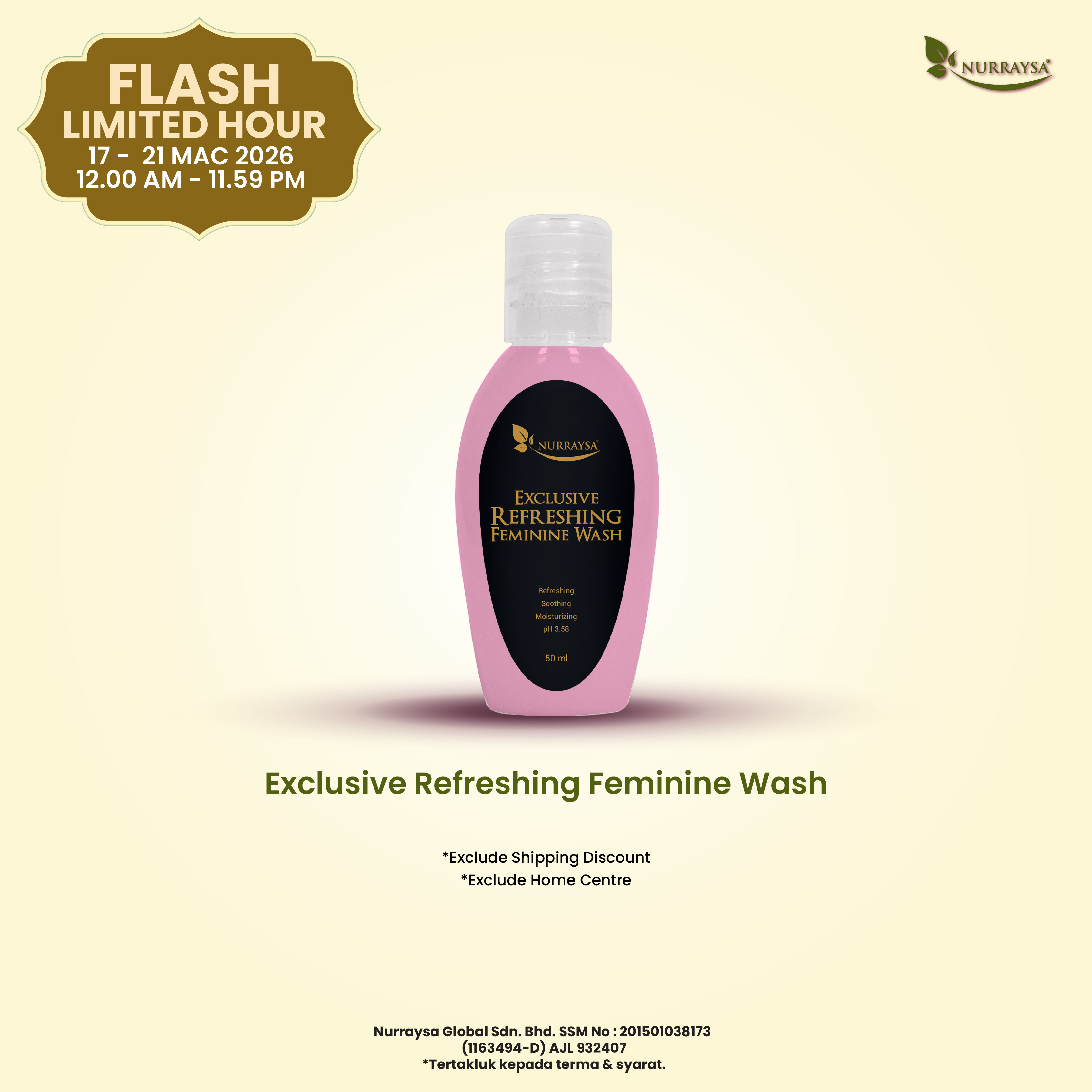 Nurraysa Beauty Raya 11 Mac-09 April : 3 Unit Exclusive Refreshing Feminine Wash