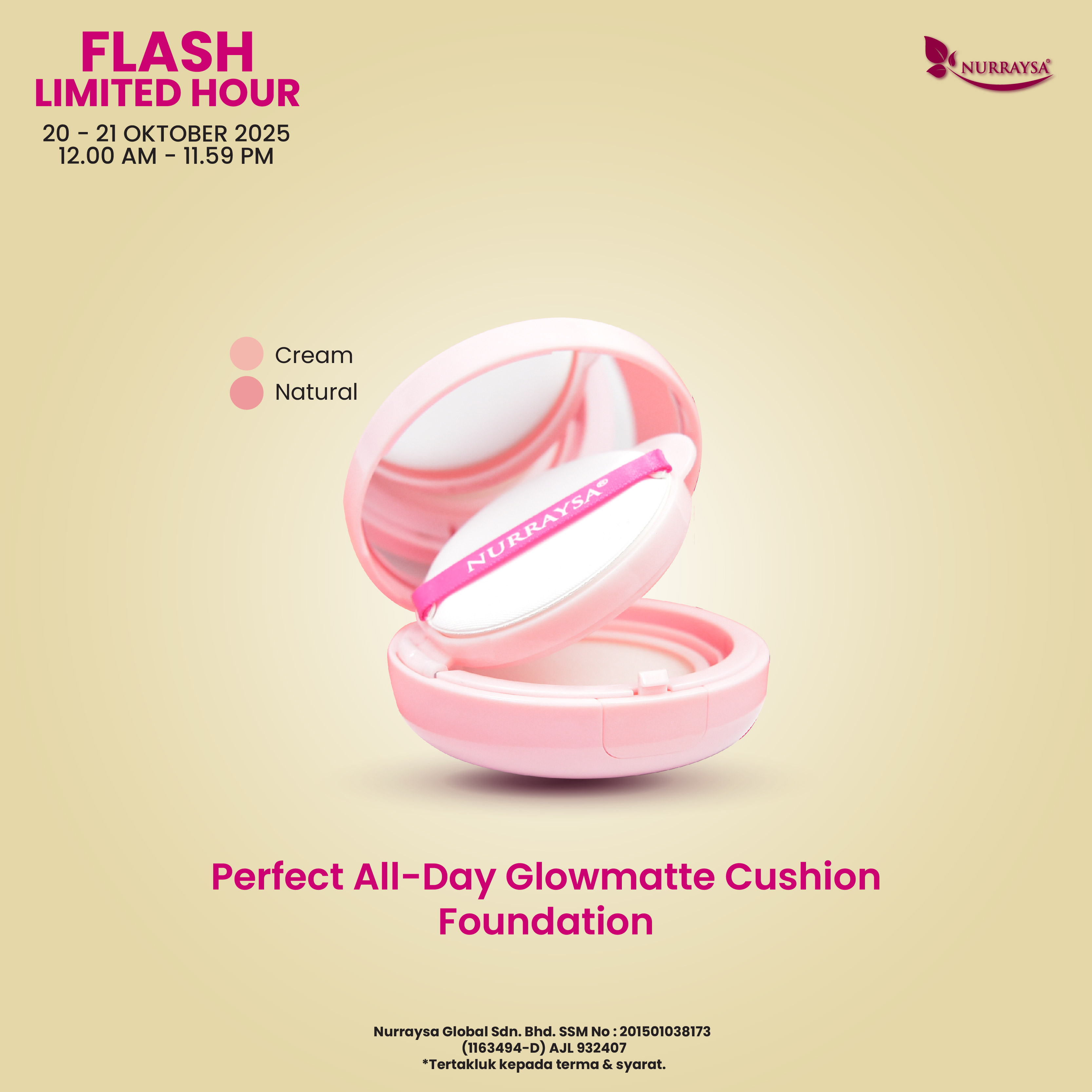 Flash Limited Hour 20-21 Oktober : 5 Unit Perfect All-Day GlowMatte Cushion Foundation