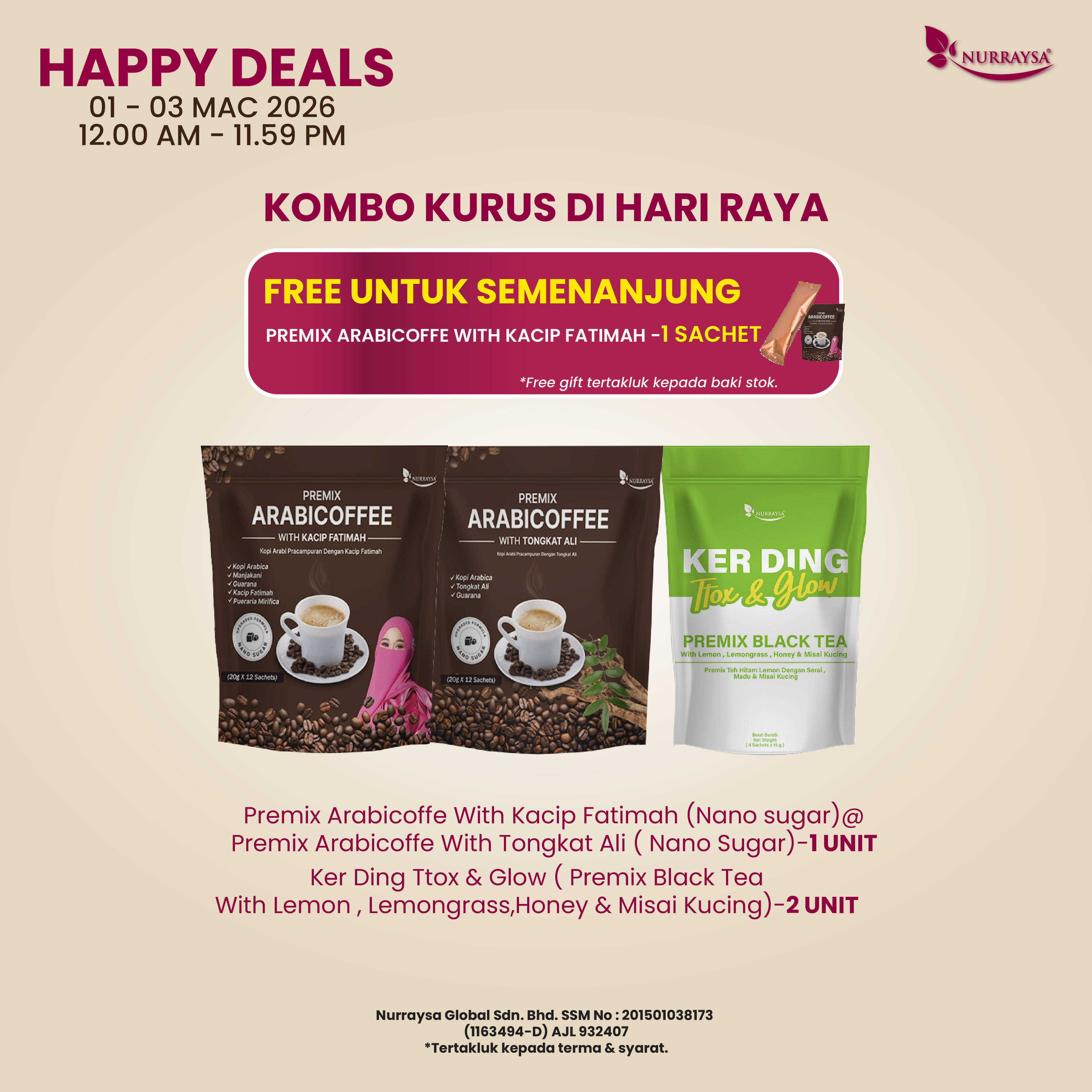 Meriah Raya Bersama Nurraysa 11 Feb-09 Mac : 8 Unit Ker Ding Ttox & Glow