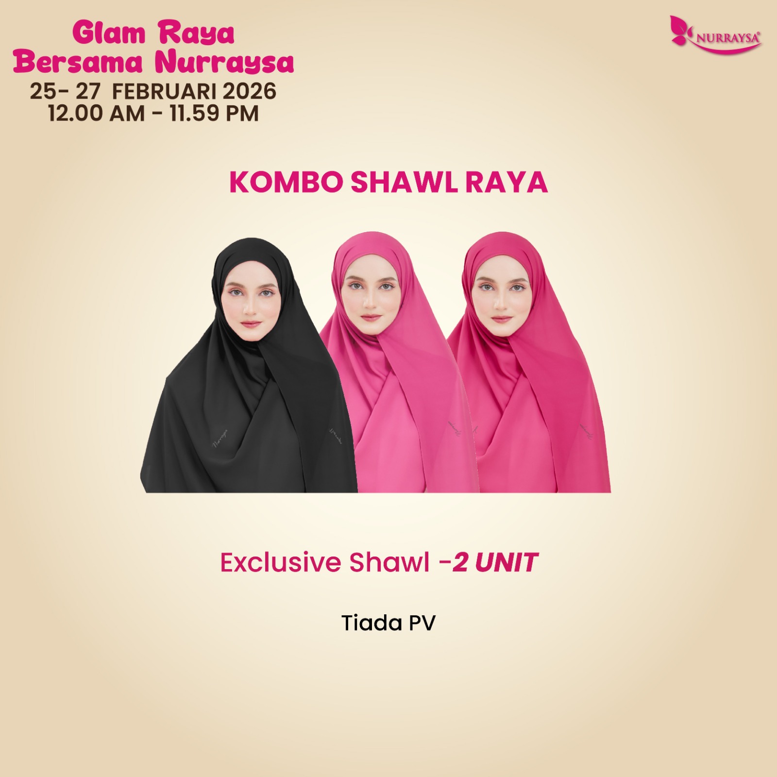 Glam Raya Bersama Nurraysa 25-27 Februari : Kombo Shawl Raya (TIADA PV)