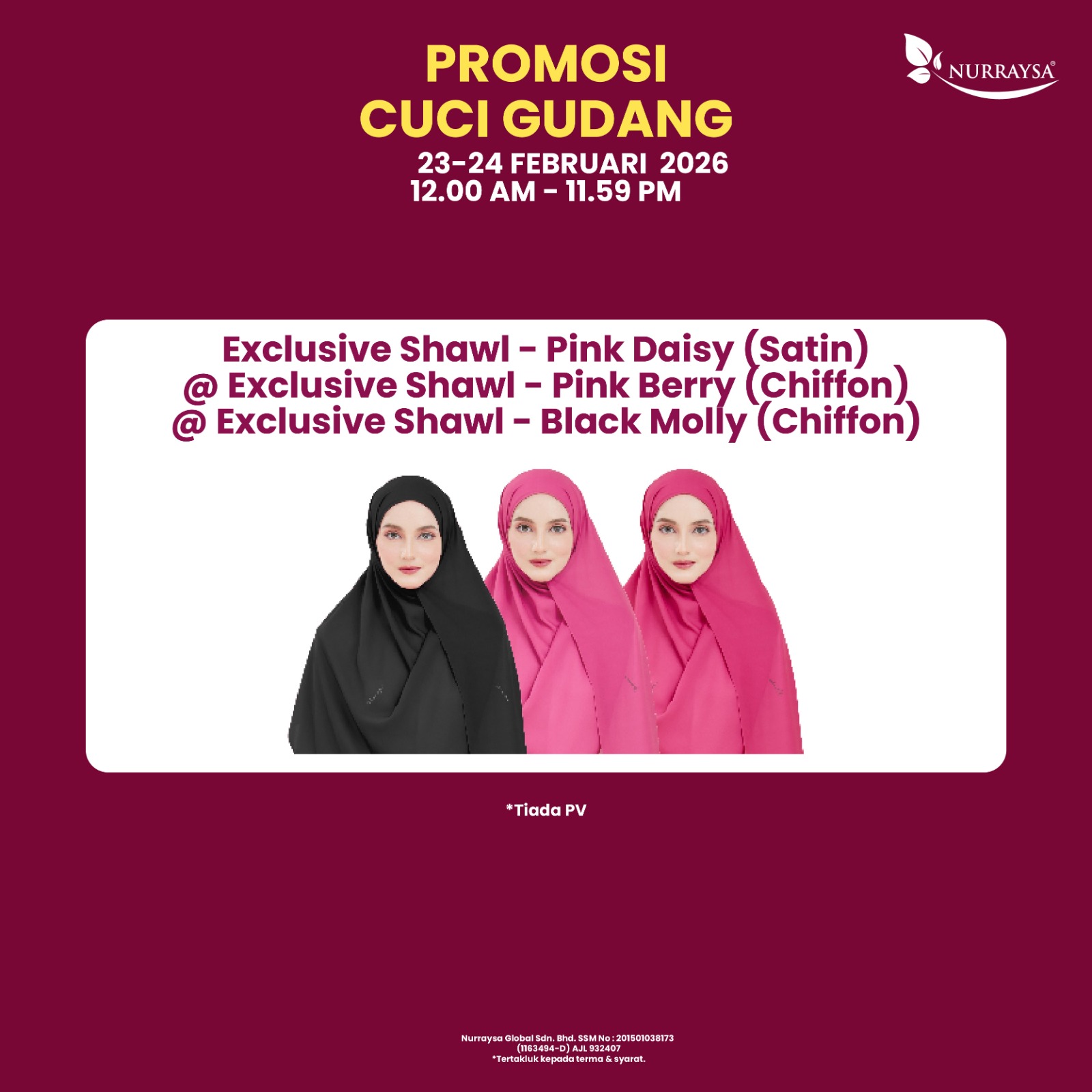 Promosi Cuci Gudang 23-24 Februari : 1 Unit Exclusive Shawl (TIADA PV)