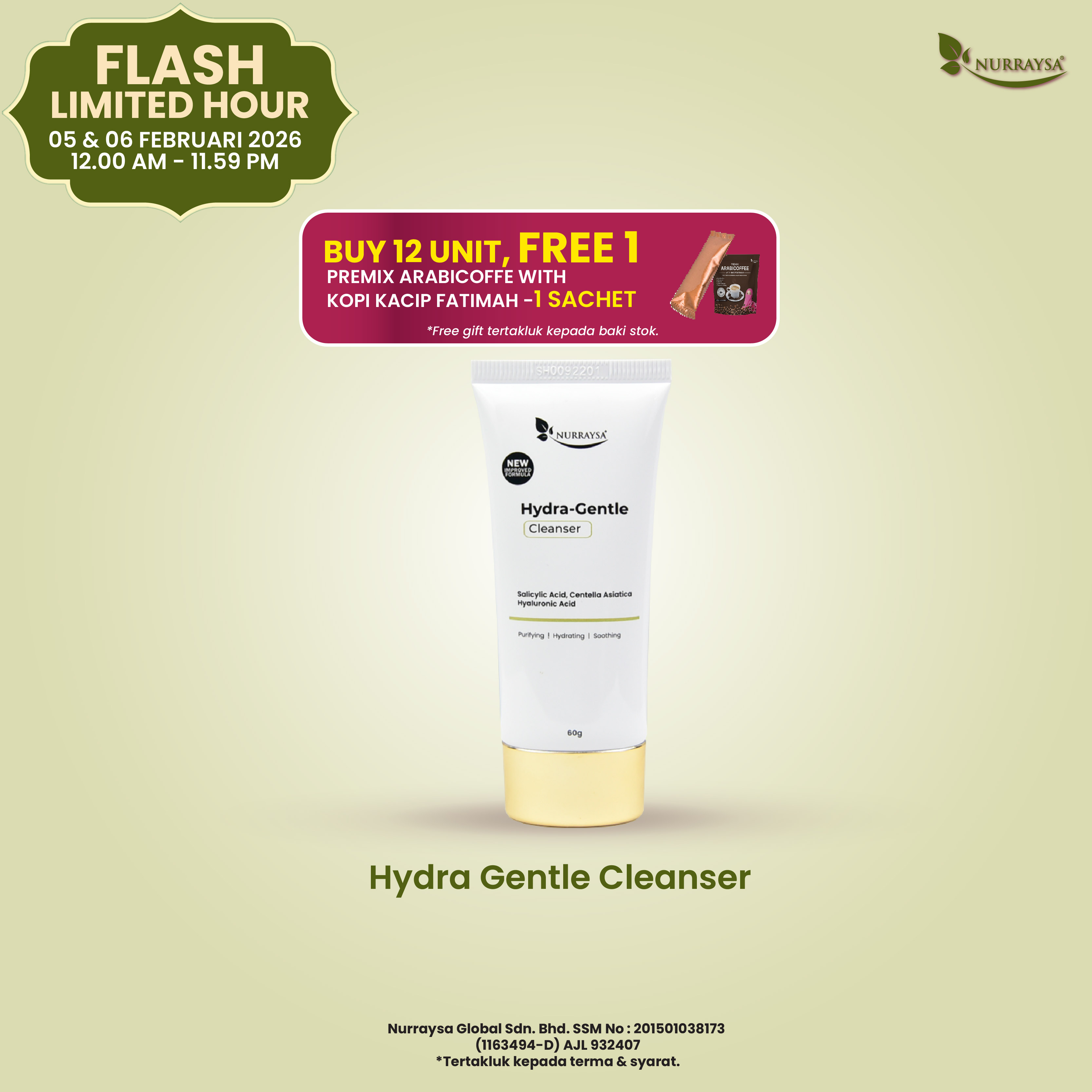 Flash Limited Hour 05-06 Februari : 5 Unit Hydra Gentle Cleanser