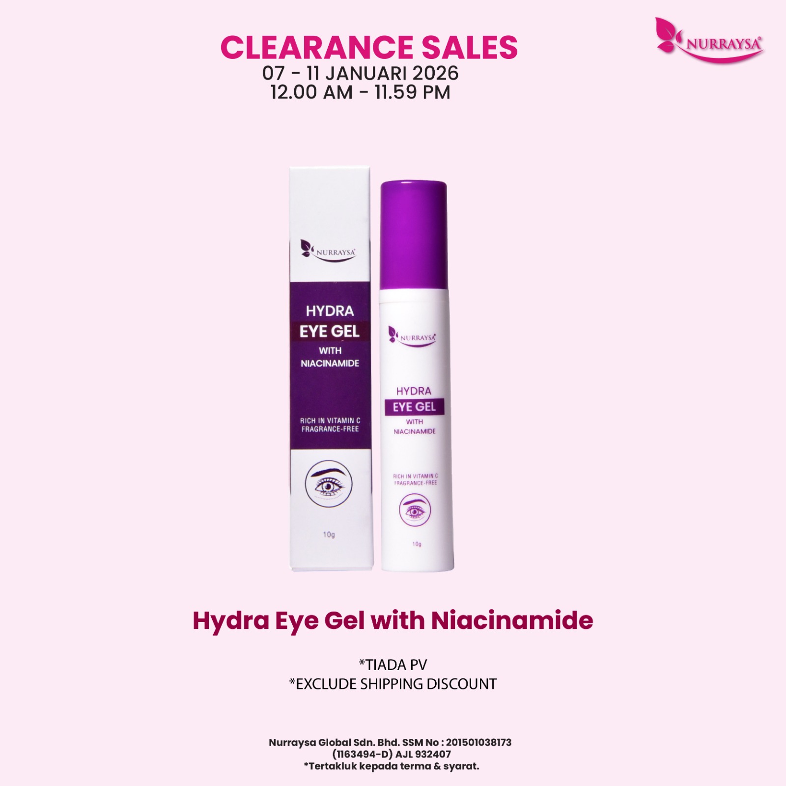 Clearance Sales 07-11 Januari : 1 Unit Hydra Eye Gel with Niacinamide (TIADA PV)