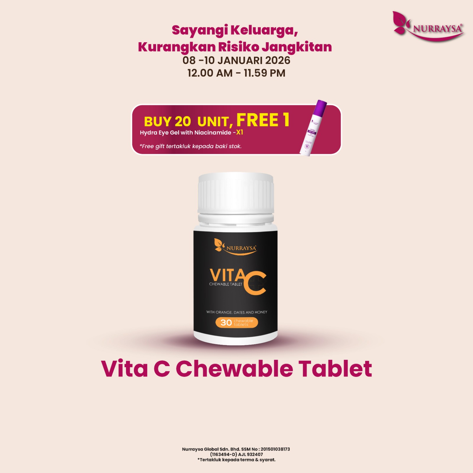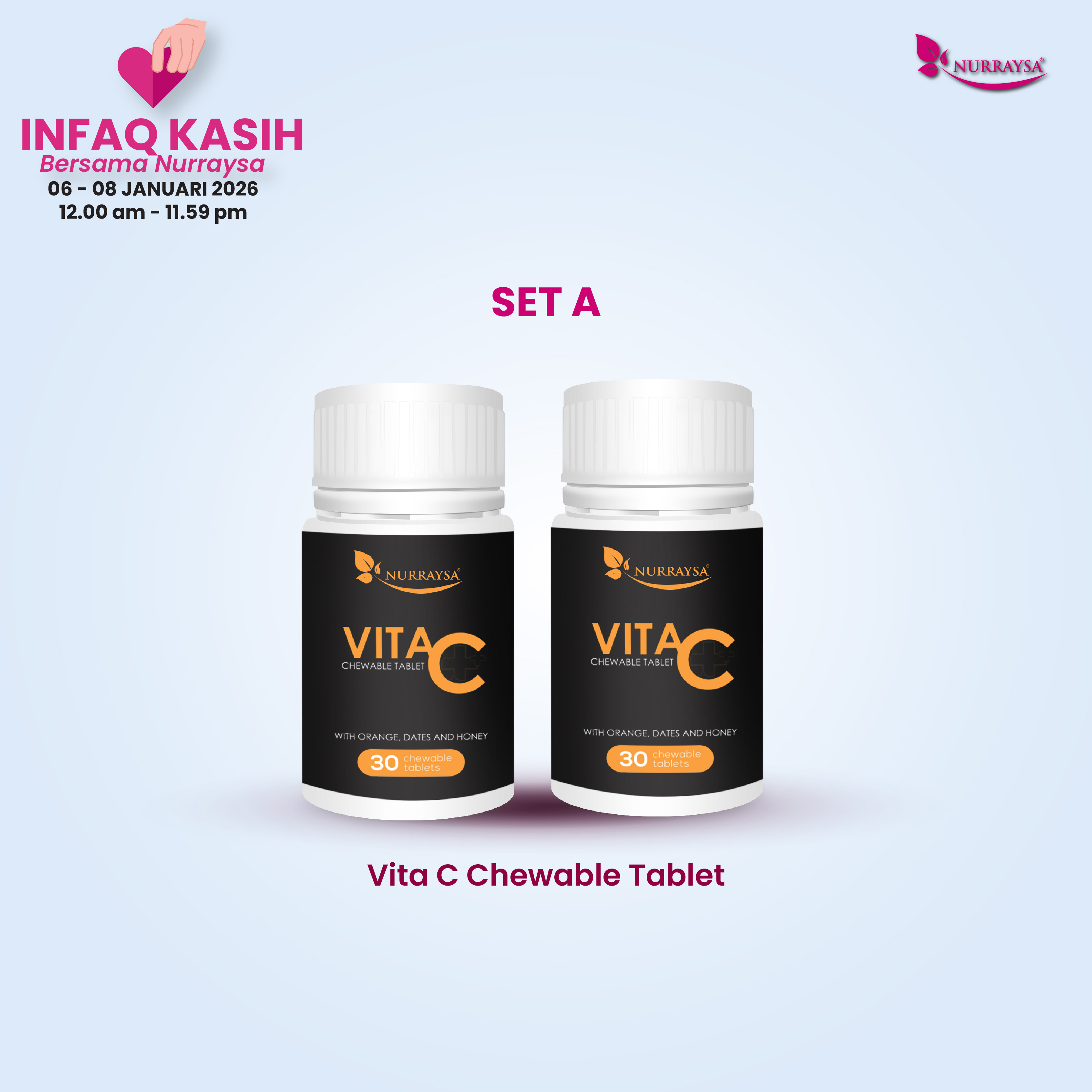 Infaq Kasih Bersama Nurraysa 06-08 Januari : 2 Unit Vita C Chewable Tablet