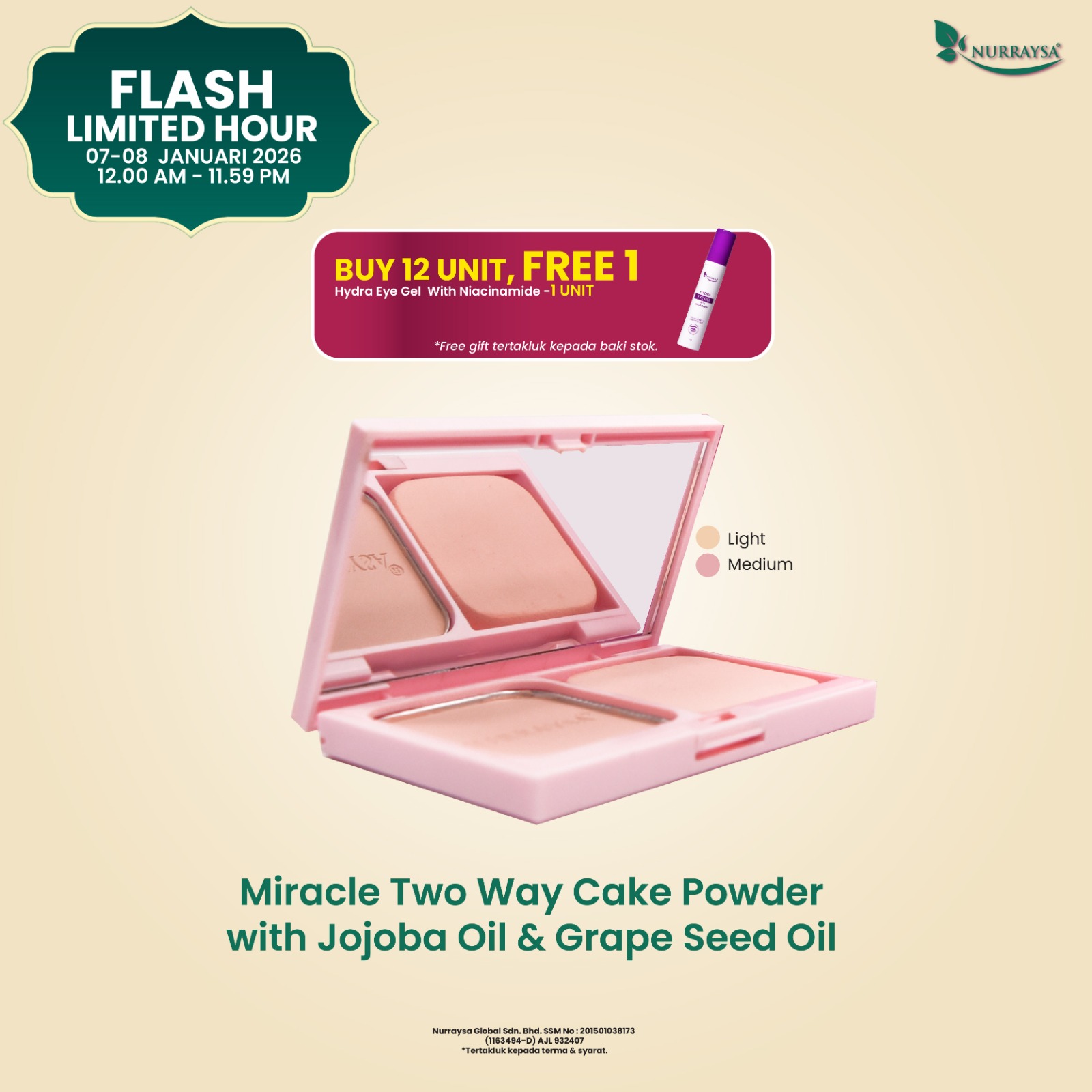 Flash Limited Hour 07-08 Januari : 3 Unit Miracle Two Way Cake Powder