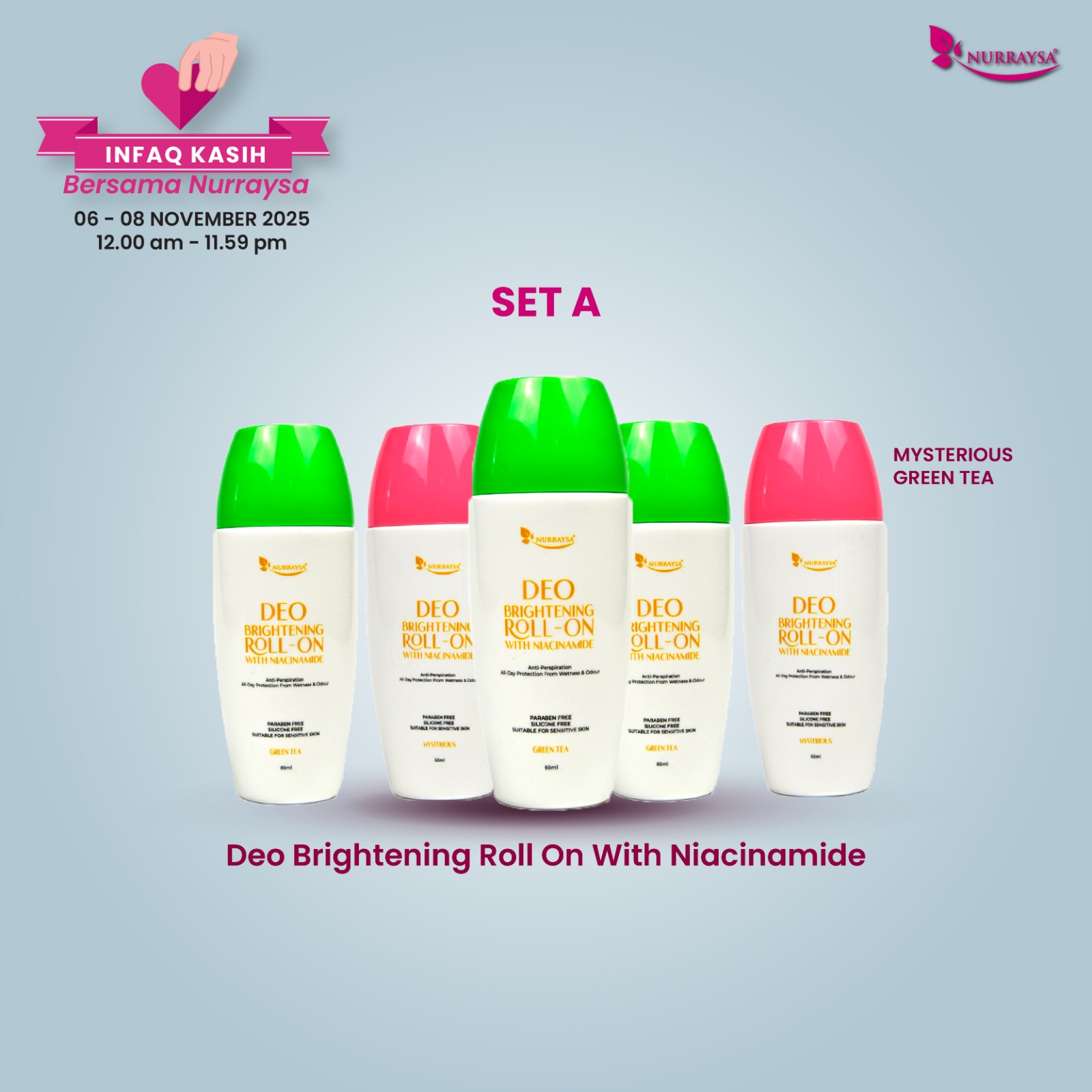Infaq Kasih Bersama Nurraysa 06-08 November : 5 Unit Deo Brightening Roll On With Niacinamide