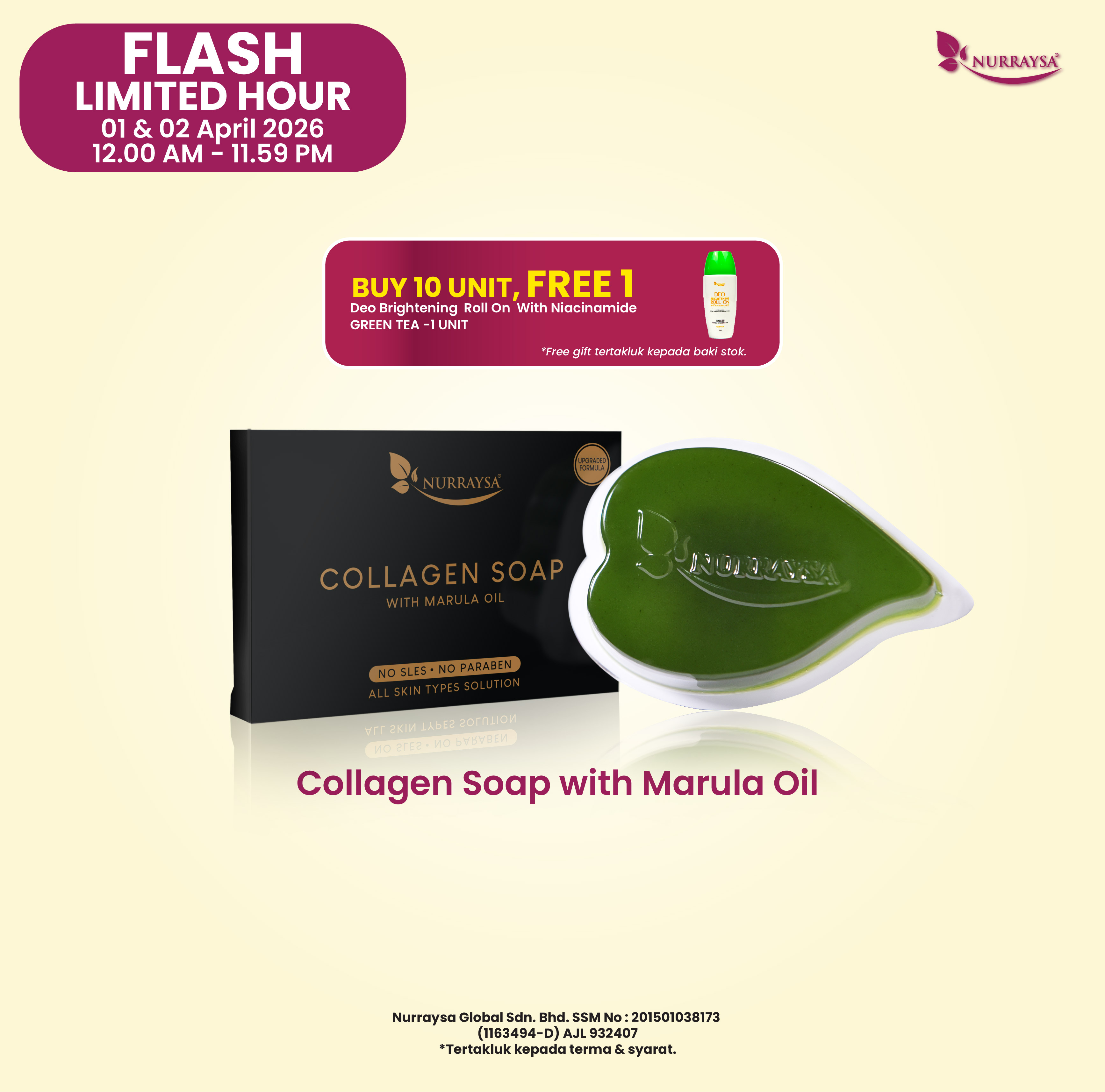 Nurraysa Beauty Raya 11 Mac-09 April : 10 Unit Collagen Soap With Marula Oil