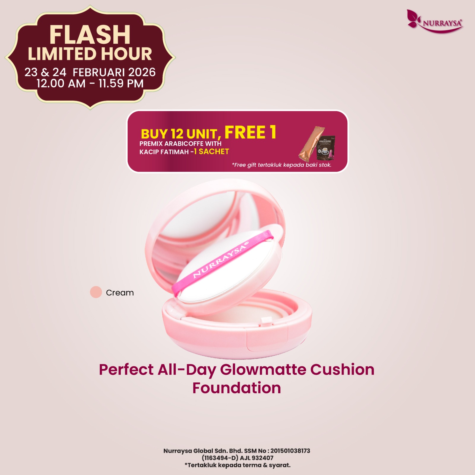 Meriah Raya Bersama Nurraysa 11 Feb-09 Mac : 1 Set Mekap Flawless Raya (SM/SS)