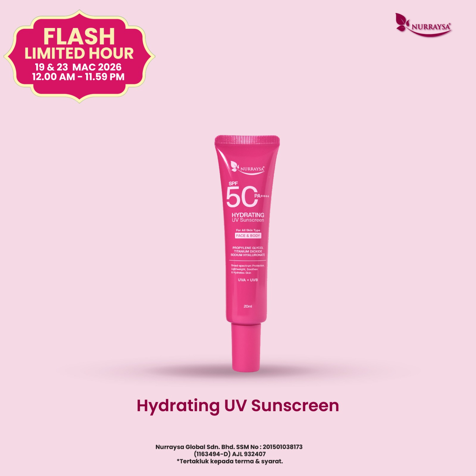 Nurraysa Beauty Raya 11 Mac-09 April : 12 Unit Hydrating UV Sunscreen
