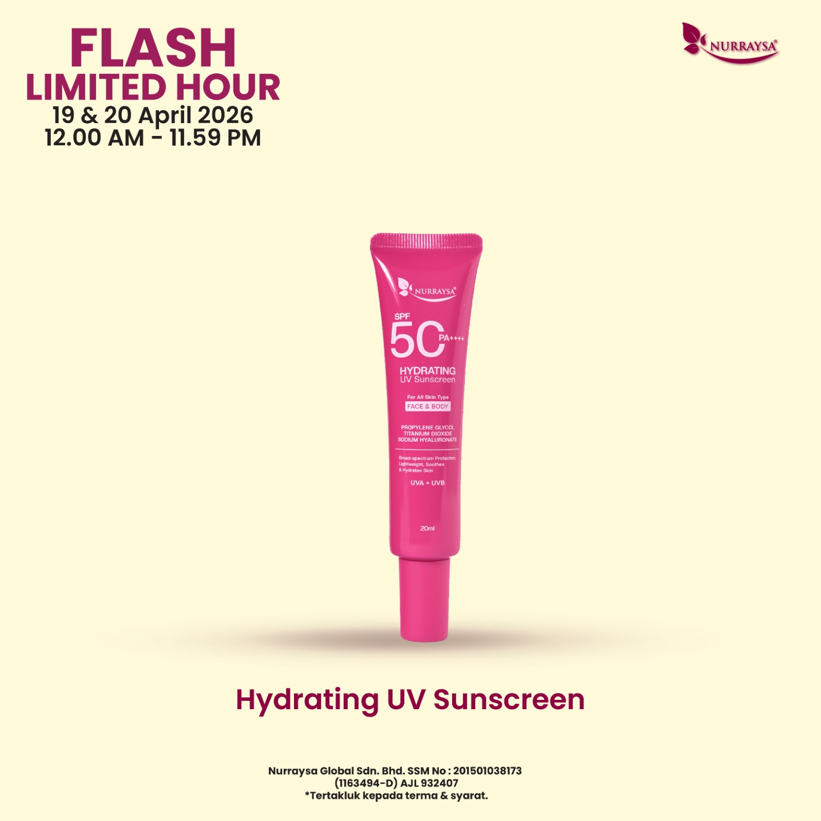 Nurraysa Glow Up Sale 11 April-09 Mei : 4 Unit Hydrating UV Sunscreen