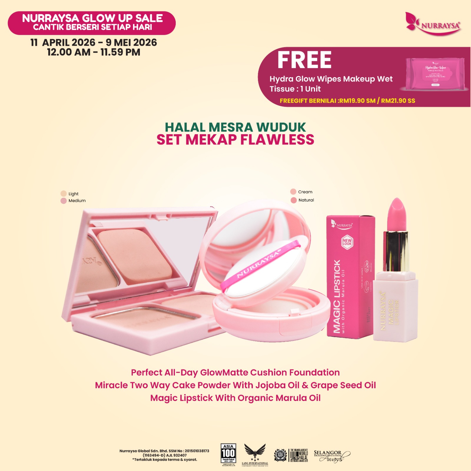 Nurraysa Glow Up Sale 11 April-09 Mei : Set Mekap Flawless (Cushion FD) (SM/SS)