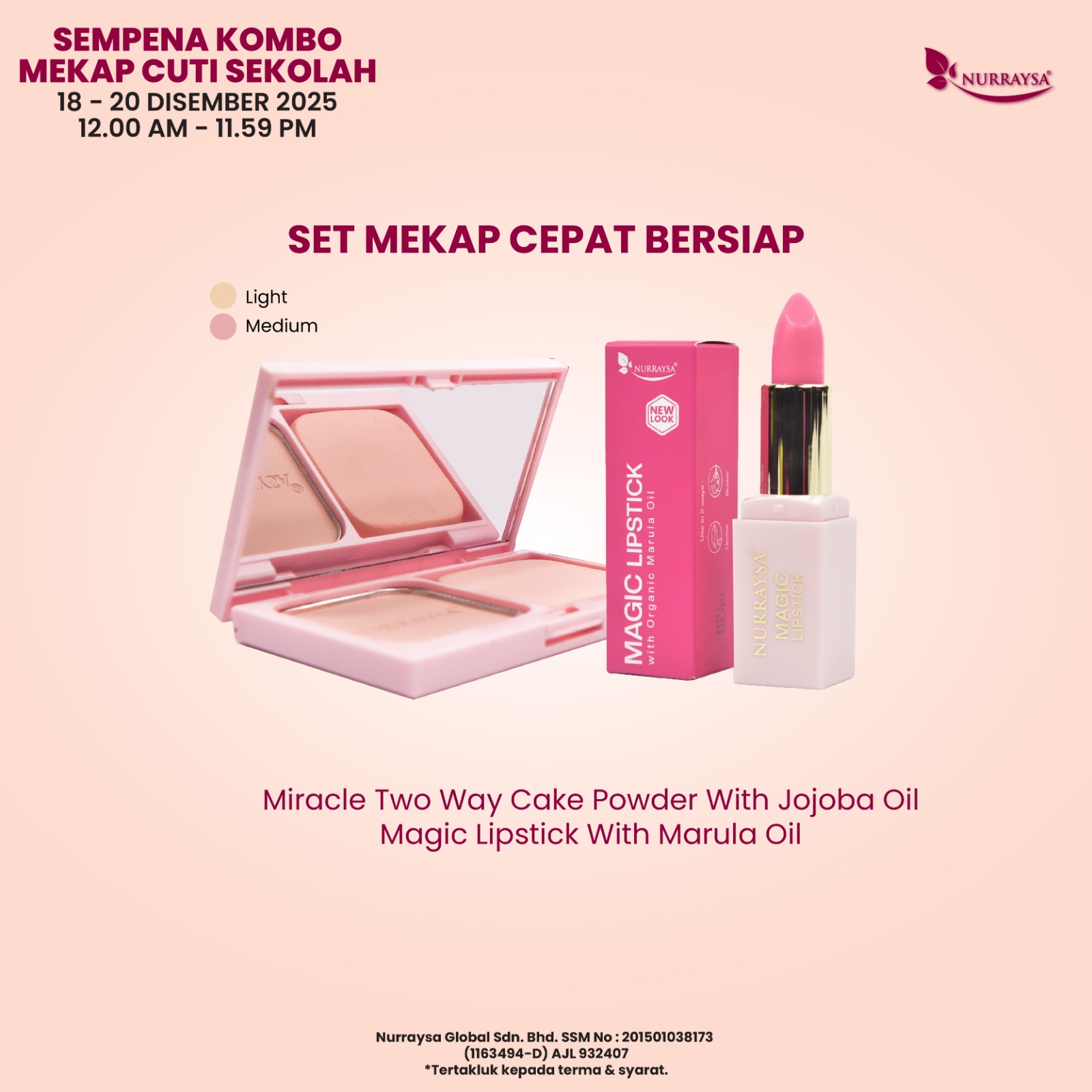 Kombo Mekap Cuti Sekolah 18-20 Disember : Mekap Cepat Bersiap (Miracle Two Way Cake+ Magic Lipstick)